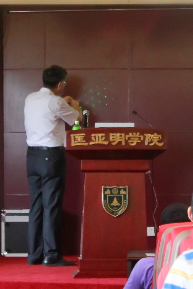 讲座一开始,祝院士就以新颖的幻灯片吸引了同学们的注意。之后,他从最普通常见的晶体的对称性出发,先提出一个实际问题,而后从最简单的情况开始,多维度,多角度的来逐一分析,深入浅出,还在现场演示了二维光栅的衍射现象。祝院士层层深入的讲述,辅以互动提问的方式,深深激发了同学们的思考。
