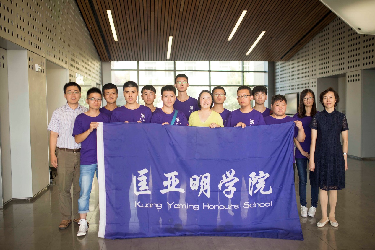 精彩的介绍之后,一行人来到物理系的门口合影留念: