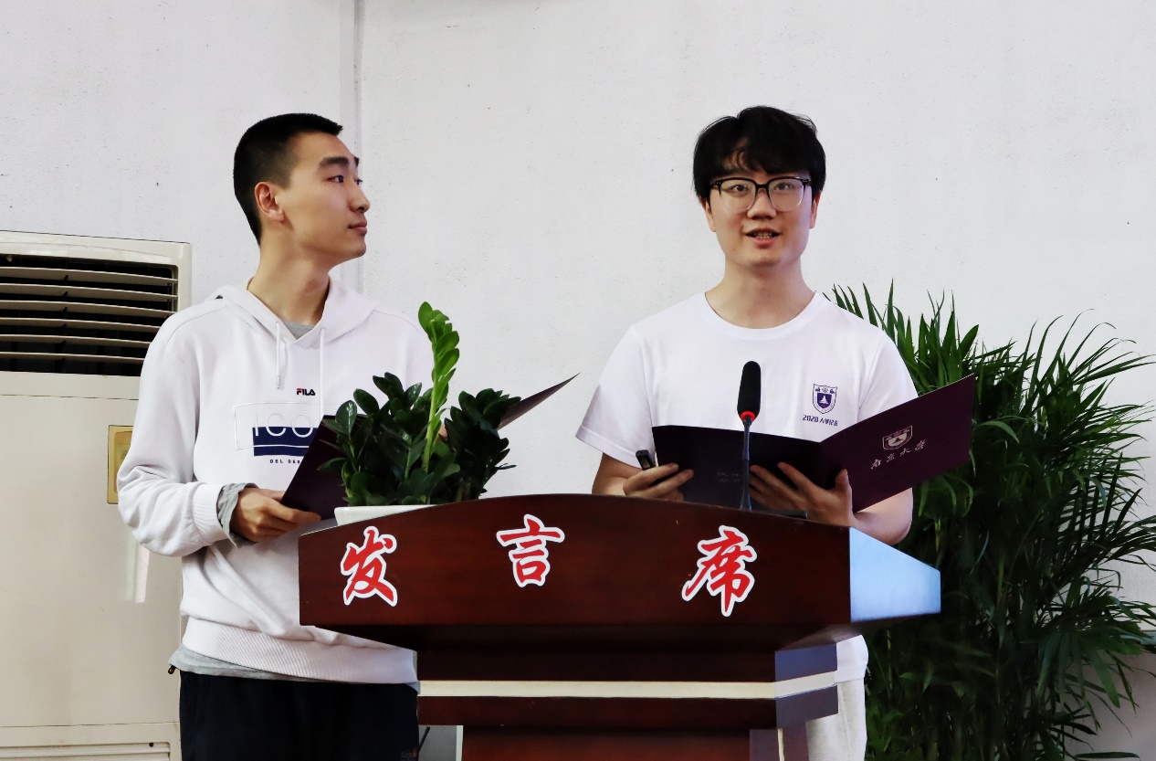 拉斯维加斯娱乐城平台 学生党支部成员为大家带来了大气磅礴的诗歌朗诵《南大赋》,带我们回顾了南大百年校史和著名人物,从世道沧桑、时局乍裂中走向芬芳桃李、锦绣山河,南大师生如骏骥奋蹄,励学不怠,“汇百科而两仪泰,求真理而万象明”。