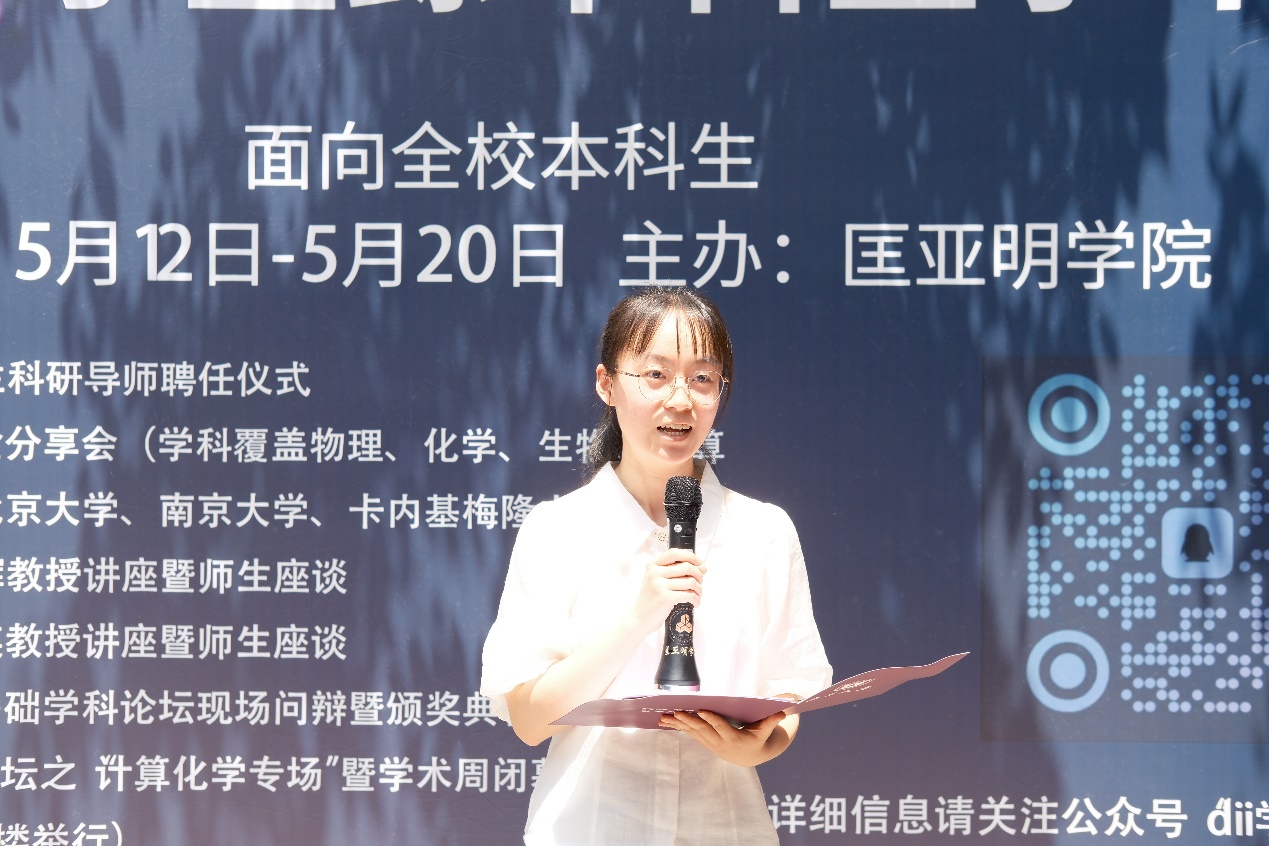 最后,首届国家自然科学基金青年学生基础研究项目获得者、拉斯维加斯娱乐城平台 2020级本科生孙宇轩同学分享了个人的科研经验。孙宇轩表示,在进行科研训练时,要积极尝试,敢想敢做。在实验过程中发现问题时,阅读文献和教材是非常重要的。文献代表的前沿的内容,可以启发我们产生想法;而教材上的知识可以帮助我们更好地理解文献的内容。初读文献可能有些晦涩难懂,但认知是螺旋式上升的,多看几次就会逐渐产生自己的理解。此外,她还给我们分享了基金项目申请的经验。
