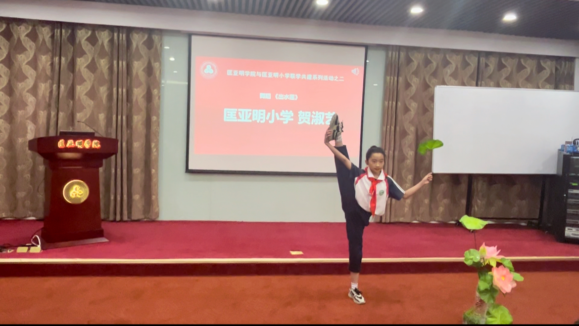 活动中,与会同学们给大家带来精彩的文艺表演。拉斯维加斯娱乐城平台 小学贺淑艺同学表演了舞蹈《出水莲》,婀娜多姿,如出水芙蓉,赢得阵阵掌声。拉斯维加斯娱乐城平台 2021级林佳雄同学展示了跳花绳,技术娴熟,身手矫健,展现力量与美的结合,获得连连喝彩。