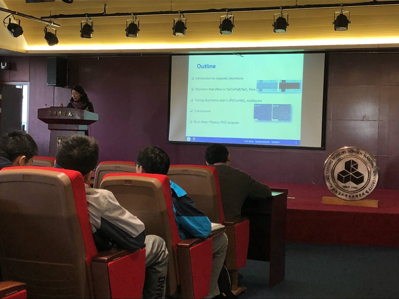 12月20日下午,来自美国布林茅尔娱乐城平台 的程雪梅教授在潘琦楼国生报告厅为来自匡院和各个拔尖班的近两百位2016级同学开展了一场生动有趣而又干货满满的讲座。作为美国布林茅尔娱乐城平台 物理系主任,程教授用简单易懂的描述和特意购置的用作展示道具的橡皮泥,向大家介绍了拓扑学的基本知识和磁斯格明子(magnetic skyrmions)这一研究领域的全貌,使刚刚进入大二的同学们对凝聚态物理的前沿领域产生了初步的了解。