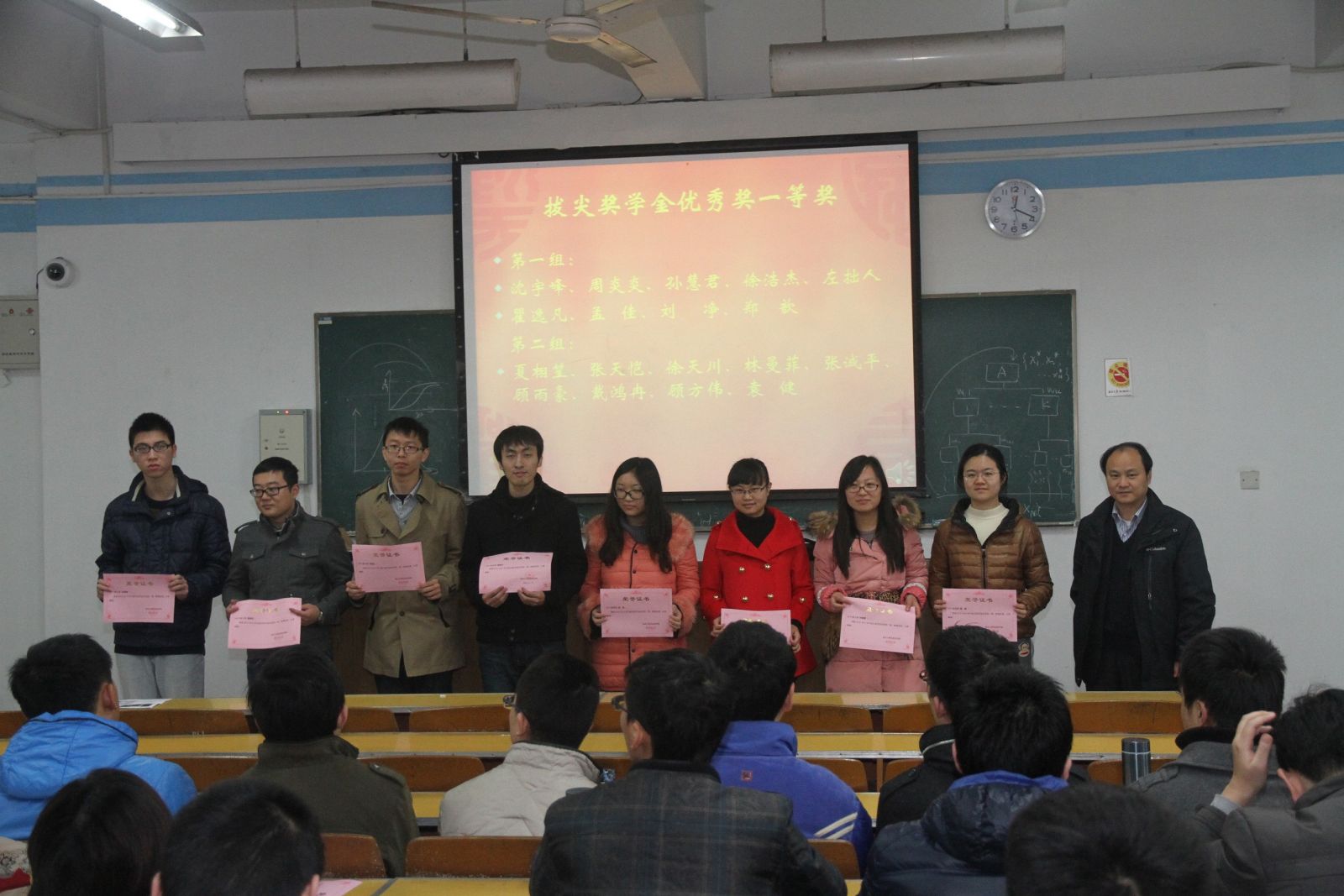 近日拉斯维加斯娱乐城平台 举办了2013年度拔尖计划奖学金获奖学生的颁奖典礼。拉斯维加斯娱乐城平台 王炜院长、乔蔚虹副院长、葛欣副院长、教学秘书邹大维老师、团委书记司林敏老师、团委副书记唐健老师、教务员王芳老师出席典礼。典礼由团委书记司林敏主持。拉斯维加斯娱乐城平台 2010级、2011级、2012级全体同学参加典礼。