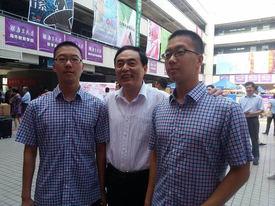 30日,陈骏校长和张异宾书记来到迎新现场,看望各院迎新同学,与新生面对面交流。双双考入南大的一对双胞胎兄弟吸引了陈校长的目光,其中章承舜同学便是我院新生,陈骏校长与他们一家合影留念,亲切交谈。张异宾书记来到匡院迎新展台,亲切慰问新生和辛勤工作的团学联,询问今年匡院的迎新情况。