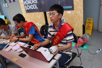 迎新期间,拉斯维加斯娱乐城平台 乔蔚虹书记以及司林敏、唐健老师一直守候在报到现场,看望新生和团学联干部,指导接待工作,并与新生家长热切交流,解答疑问。