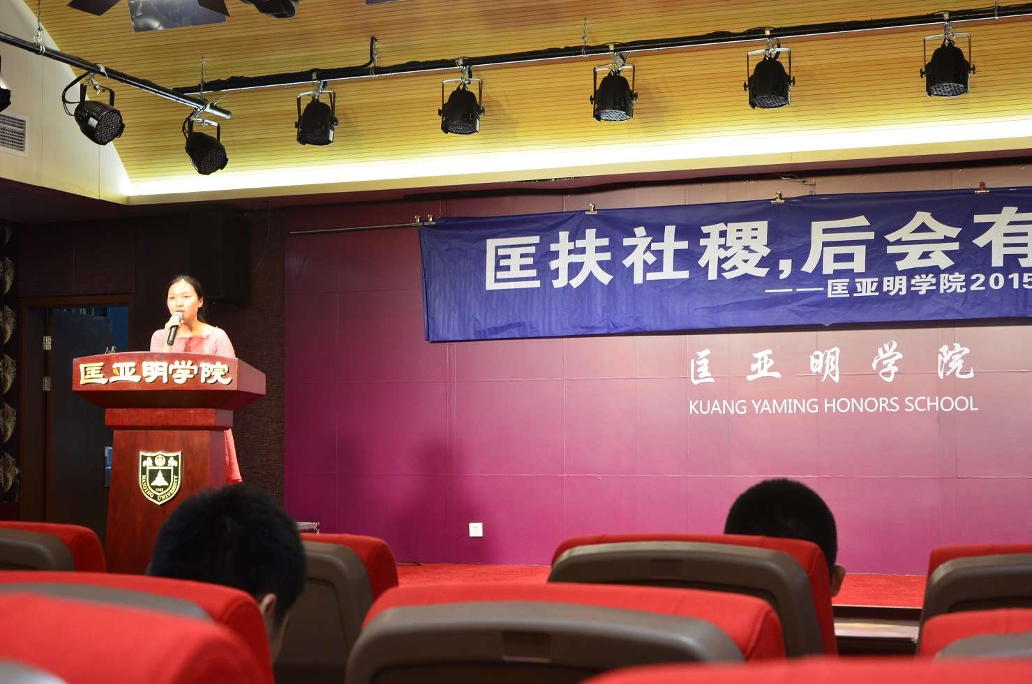 在这最后的相聚场合,毕业生们尽抒感言。2011级理强的张靖轩回忆了自己四年的点点滴滴,最后说:“此时一别,不知何时再聚。后会有期,早日成双!”文强的俞荔子从预备班至今的收获进行了概况总结,她相信文强的同学们在以后都会很好的。理强的夏诗文表示匡院是一个非常好的台阶,而匡院的学子不管收获何种成就,都是顺着这个台阶在向上走。文强的孙辰惠同学表示感谢院系培养,祝福大家未来更精彩。