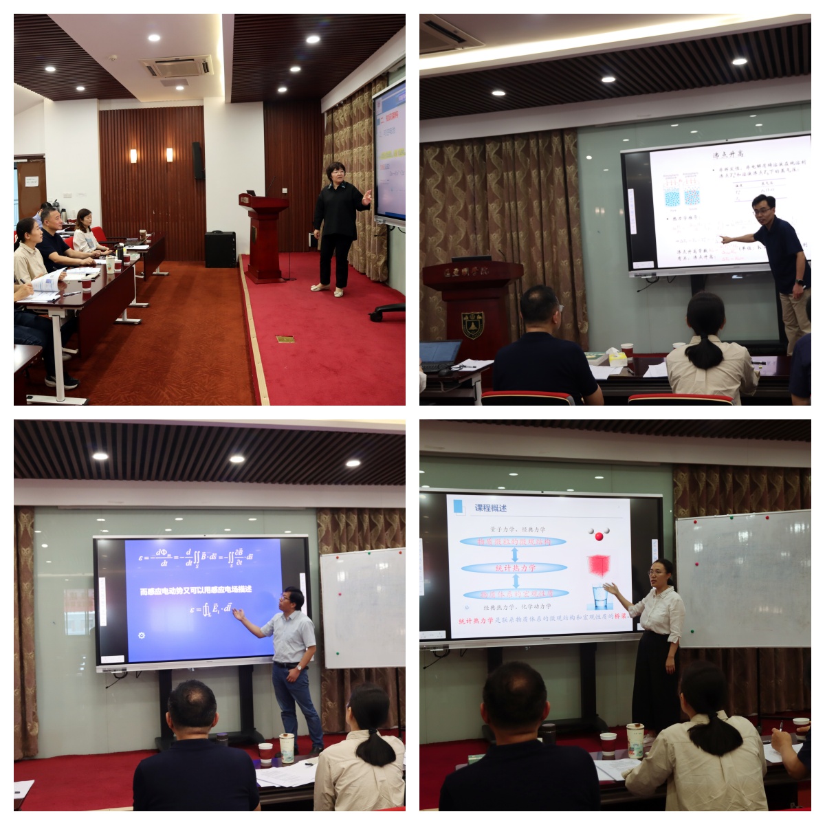 娱乐城平台 教师胡晶磊、胡茜茜、张小鹏和曾桂香分别进行了教学演示和课程介绍。参赛老师结合生动具体的案例分析,将明晰的教学目标与先进的教育理念相结合,把复杂的化学、统计热力学、电动力学等理论知识以通俗易懂、深入浅出的方式呈现,充分展现了娱乐城平台 教师的教学风采。评委们充分肯定了参赛教师扎实的专业教学能力和创新的教学理念,并从教学设计、内容构建等多维度对参赛老师提出了细致入微的建议与指导。