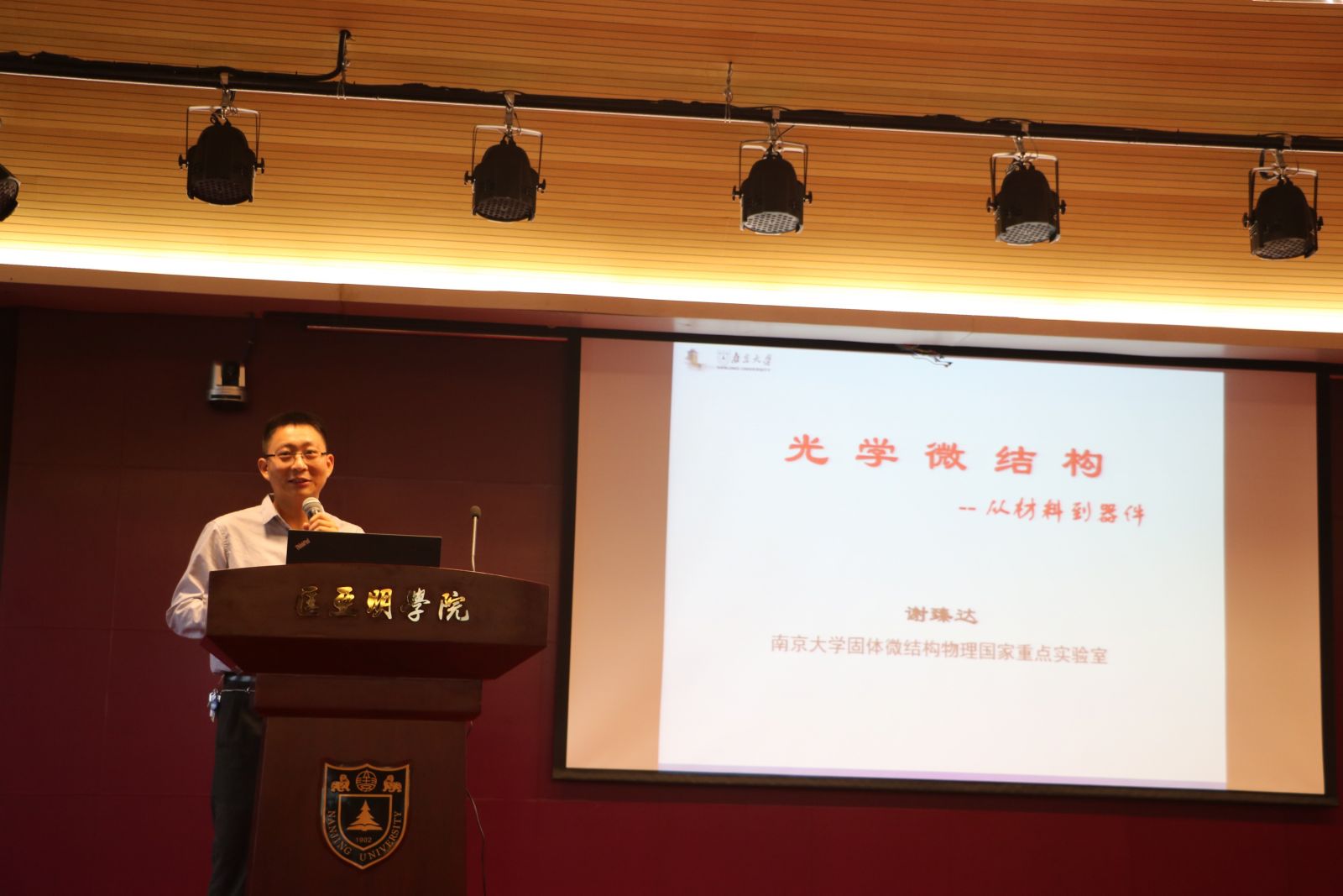 在2016暑期学校期间,来自南京大学固体微结构物理国家重点实验室的谢臻达教授在潘琦楼C405国生报告厅为同学们介绍了有关光学微结构的前沿知识。谢教授的讲座引人入胜,赢得同学们的阵阵掌声。