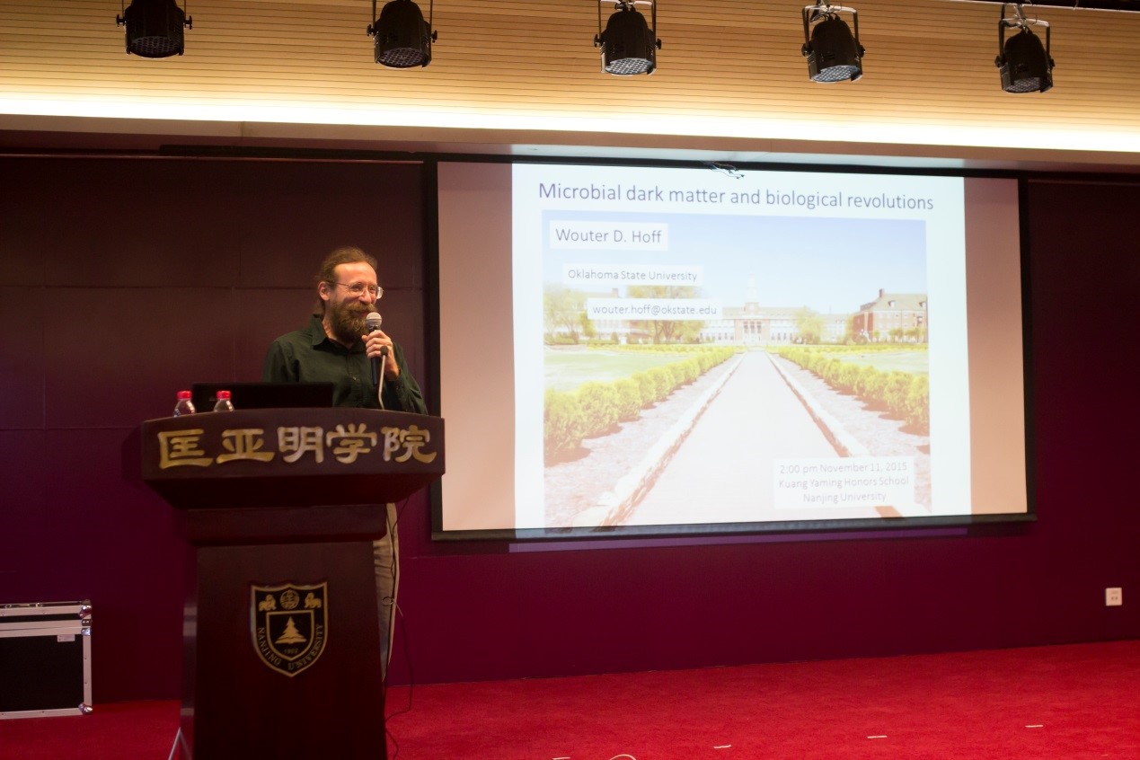 11月11日下午2:00,美国俄克拉荷马州立大学生物化学教授Wouter Hoff为2014级同学们作了题为“Microbial Dark Matter and Biological Revolutions”的讲座。作为生物化学研究的知名专家,Wouter Hoff教授主要研究基因组以及相关生物化学问题。Wouter Hoff教授从DNA的三种测序方法,电子显微镜的发展,再到基因组的测定及研究,始终贯穿着生物学思想中的创新思维,还配以生动的动画讲解,形象易懂,深入浅出。讲座由拉斯维加斯娱乐城平台 王炜院长主持。
