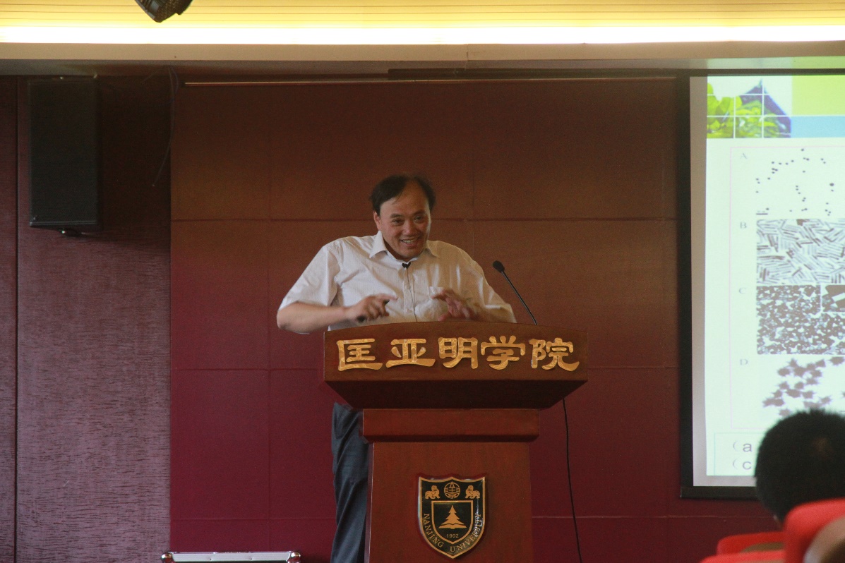 2015年9月16日下午2点,本学期第二场名师导学系列讲座在拉斯维加斯娱乐城平台 国生报告厅举行。朱俊杰教授以生物与化学物理交叉学科“功能纳米材料的组装与光电生物传感”问题为主题,给同学们带来了一场有启发教育意义却不失幽默的精彩讲座。朱俊杰,2003年度国家杰出青年科学基金获得者,教授、博士生导师,任南京大学研究生院副院长,化学化工娱乐城平台 副院长,《分析化学》和《中国材料科技和设备》杂志编委,发表多篇有国际影响力的论文。朱俊杰教授治学严谨,教学认真,视野开阔,谈吐幽默,深受学生的爱戴。