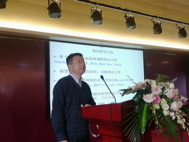 刘锋教授风趣幽默又平易近人,刘教授表示,他希望通过这次讲座向同学们展现物理学与生物学交叉研究的魅力,同时说明理论建模对生物学定量分析的必要性。刘教授先介绍了一些生物学背景知识,借此说明将分子网络看成非线性动力系统可以开辟更多的研究领域。接着,刘教授用几个十分详尽的例子介绍了他在转录调控网络、信号传导网络、神经元网络等方面的一些工作。