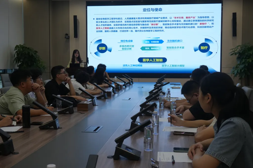 深圳先进院的负责老师首先向师生们介绍了研究院的整体定位、发展历程以及在信息、材料、生物医学工程、脑科学等前沿交叉领域的科研布局与重要成果。随后,师生们分组参观了两个核心研究所的尖端实验室:在生物医学与健康工程研究所,师生们近距离接触了面向未来医疗的机器人研发平台和智能医疗器械创新成果,感受工程技术与生命健康领域的深度融合;在脑认知与脑疾病研究所,师生们探访了致力于理解大脑奥秘、攻克脑疾病的研究设施,了解其在脑图谱绘制、神经调控、类脑智能等方面的前沿探索。