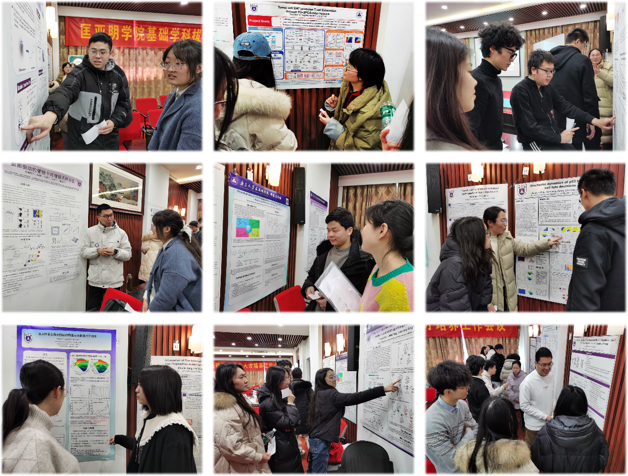 第二个环节中,十六位研究生同学进行了海报展示。他们用清晰明了的图表、简洁准确的文字,将自己的研究工作生动地展现在大家面前。各位研究生导师和同学们展开了激烈而深入的讨论:老师们针对大家的海报内容提出了中肯的建议和宝贵的意见,为研究生们的课题研究指明了方向和突破口,而同学们也在互相交流中收获颇丰,不仅加深了对自己课题的理解,还了解了许多前沿方向的最新进展,拓宽了学术视野,激发了更多的研究灵感。