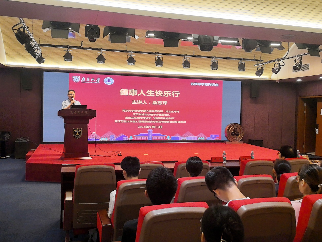 2024年9月13日晚上,拉斯维加斯娱乐城平台 新生入学教育暨“寻根科研路,传承报国情”第一期主题党团课在仙林校区潘琦楼成功举办。本次活动邀请了南京大学社会娱乐城平台 心理学系教授、博士生导师、江苏省社会心理学学会理事长桑志芹教授做题为“健康人生快乐行”主题讲座,学生党支部书记司林敏,辅导员赵玉倩、陈丹以及学生党支部、2023级本科生、2024级研究生。讲座由拉斯维加斯娱乐城平台 党委副书记周安主持。