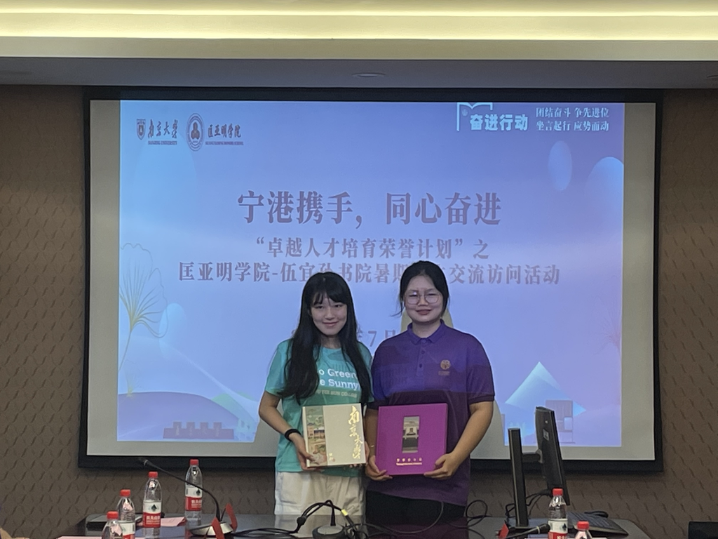 在为期一周的活动中,匡院与伍宜孙书院师生走访了南京大学仙林校区左涤江天文台、生科院标本馆、地科院,体验了科创氛围和学术文化,也参观了南大仙林校区校史馆以及鼓楼校区北大楼、二源璧等标志性建筑。此外,师生们还参观了中山陵、明城墙、阅江楼、南京博物院和侵华日军南京大屠杀遇难同胞纪念馆。在闭幕式暨学习成果汇报会上,来自两院的学生就《两地书院文化比较》《在古董铺子里畅游—我们在南京的所见所闻》等题目进行了分组汇报。潘江鹏教授在发言中感谢大家的共同努力,特别是匡院师生的热情接待和精心安排让这次交流活动获得了圆满成功,也期待未来有更多这样的机会,促进两校间的深入交流与合作。周媛在总结讲话中再次对此次活动的成功举办表示祝贺,她希望两院师生的互访交流能够更加深入持久,为共同推动拔尖创新人才的培养、弘扬中华优秀传统文化做出更大的努力。