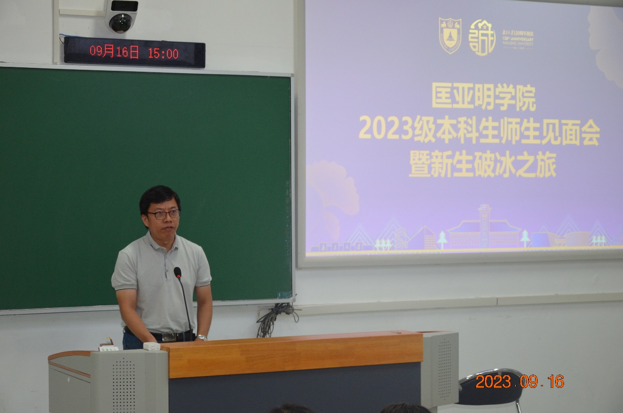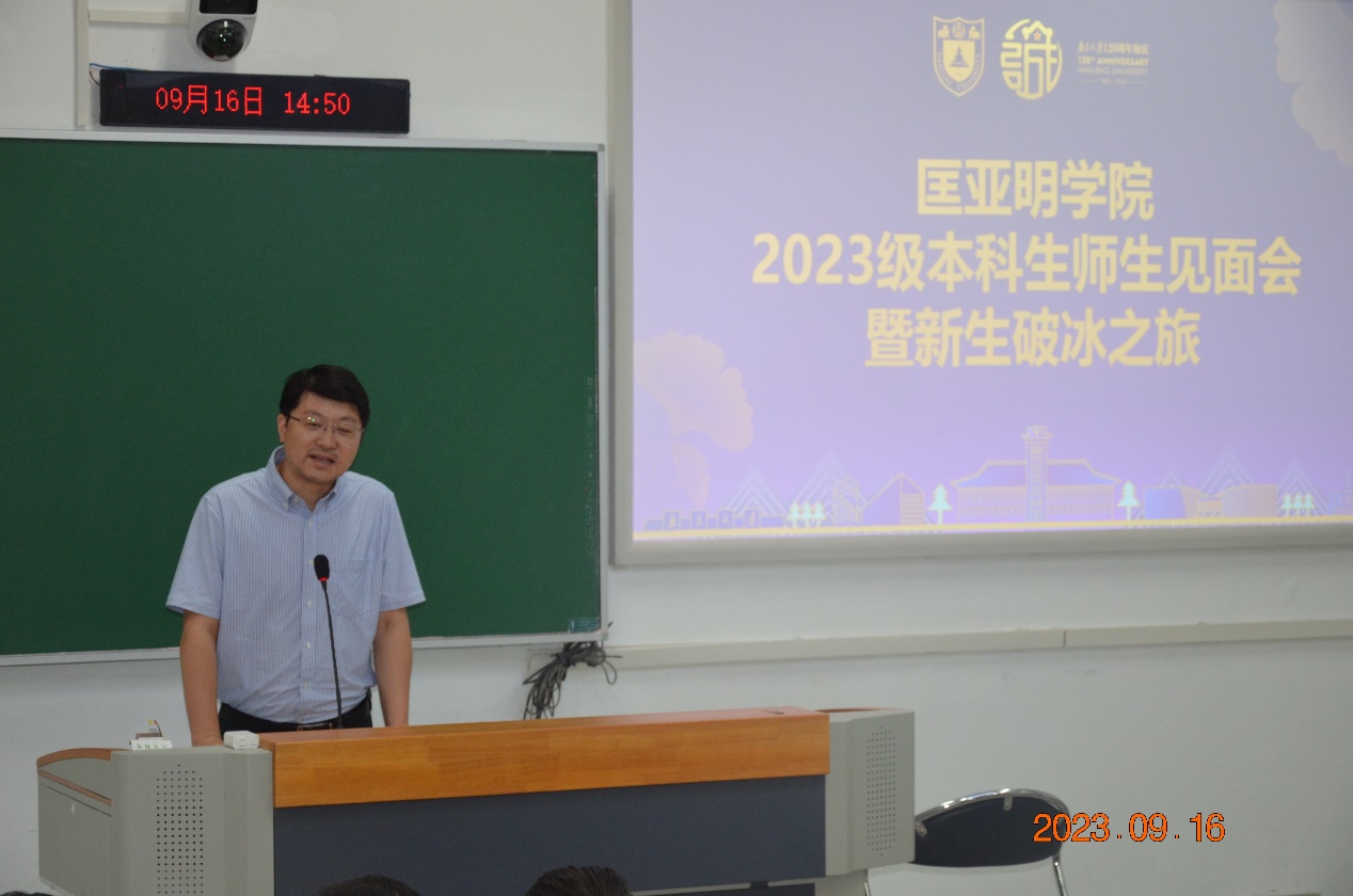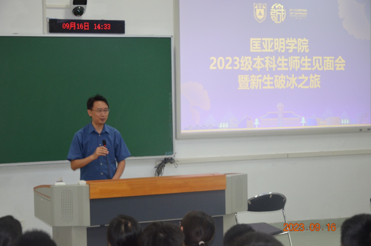 为让2023级匡院新生更快、更好地融入大学生活,明晰在大学中的目标,促进师生间、同学间相互认识、熟悉,拉斯维加斯娱乐城平台 9月16日下午在鼓楼校区郑钢教学楼举行“2023级本科生师生见面会暨新生破冰之旅”。拉斯维加斯娱乐城平台 领导、老师们,拉斯维加斯娱乐城平台 2023级全体新生及学长学姐们齐聚一堂,进行了愉快又深刻的交流。