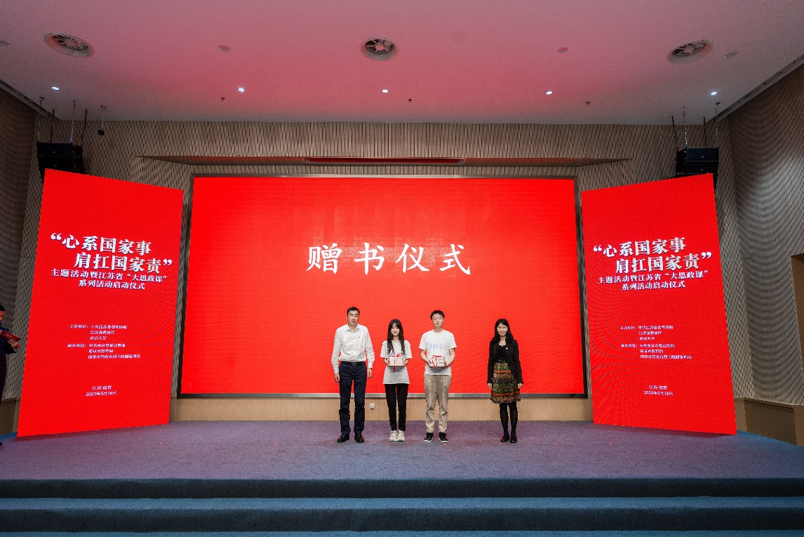 中共南京市委宣传部副部长、市文明办主任经地生和南京市教育局宣传与德育处处长完进向娱乐城平台-拉斯维加斯娱乐城平台 学生代表赠送“信仰的力量”系列丛书,期待青年学子在书籍中了解英烈事迹,感悟英烈精神,自觉当好新时代雨花英烈事迹与精神的传承人。