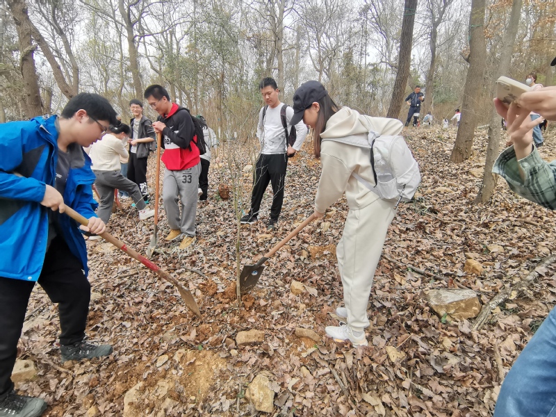 组织本研学生前往栖霞山开展义务植树活动,用行动守护环境,传递绿色环保正能量。
