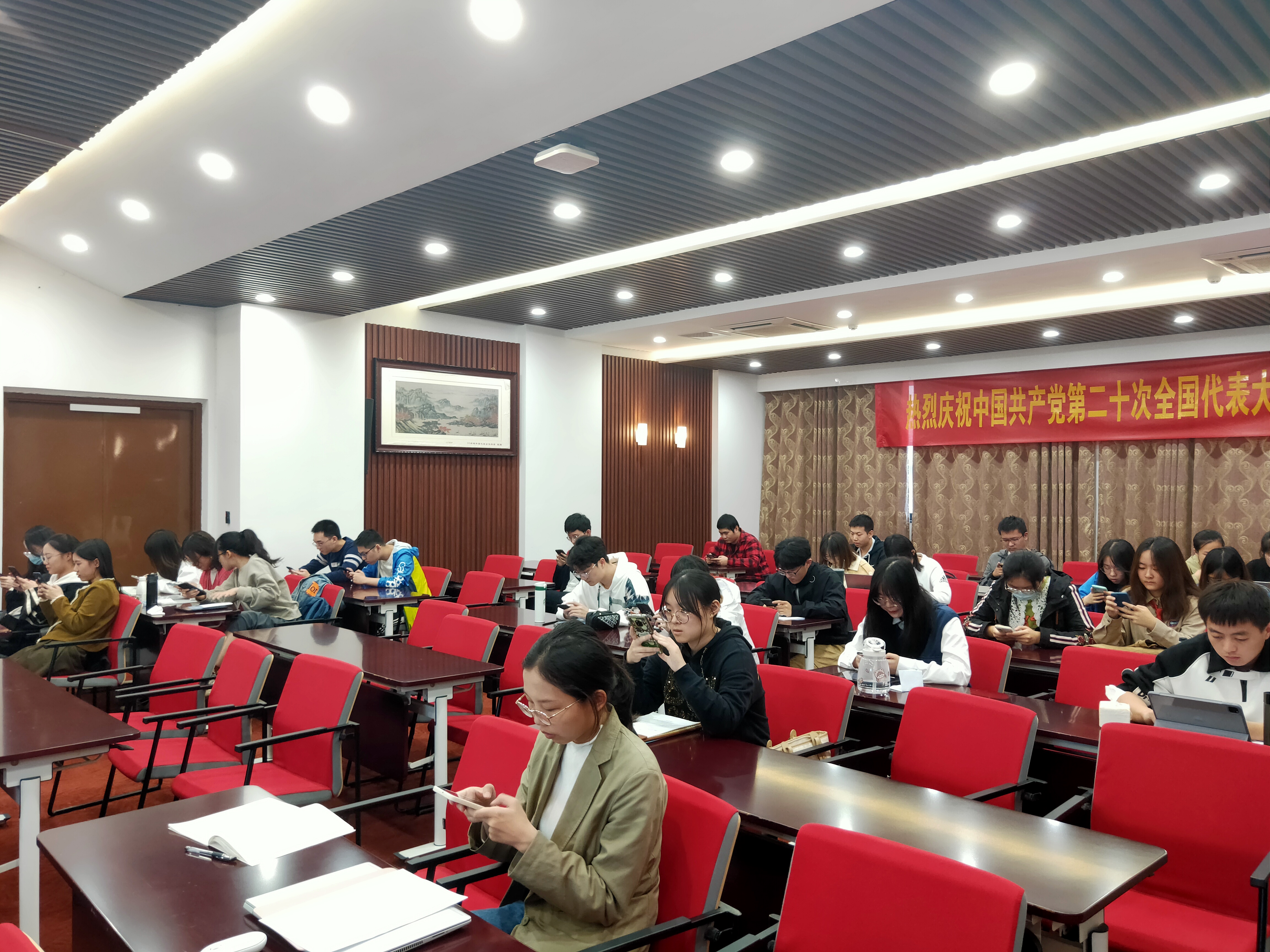 支部党员围绕二十大的学习感悟,开展交流沟通。刘佳欣同志从自身出发,谈及青年生逢其时,拥有广阔的舞台和丰富的机遇,应当敢想敢为、善作善成,坚定不移跟党走,为祖国发展添砖加瓦。谷镕同志联系自身实际,针对报告中提到的“完善我国就业支持体系,实现高质量充分就业”分享了自己的感悟,她强调对于就业问题不仅需要国家在就业环境、就业公平等方面给我们个人提供保障,我们个人也要结合自身实际,进行适合自身的求职选择。入党积极分子孔冰清同学分享了习总书记对青年人的寄语,这激励她坚定意志,加强理论学习,为成为一名共产党员继续向前。党支部其他党员们也展开了热烈的分享和讨论。