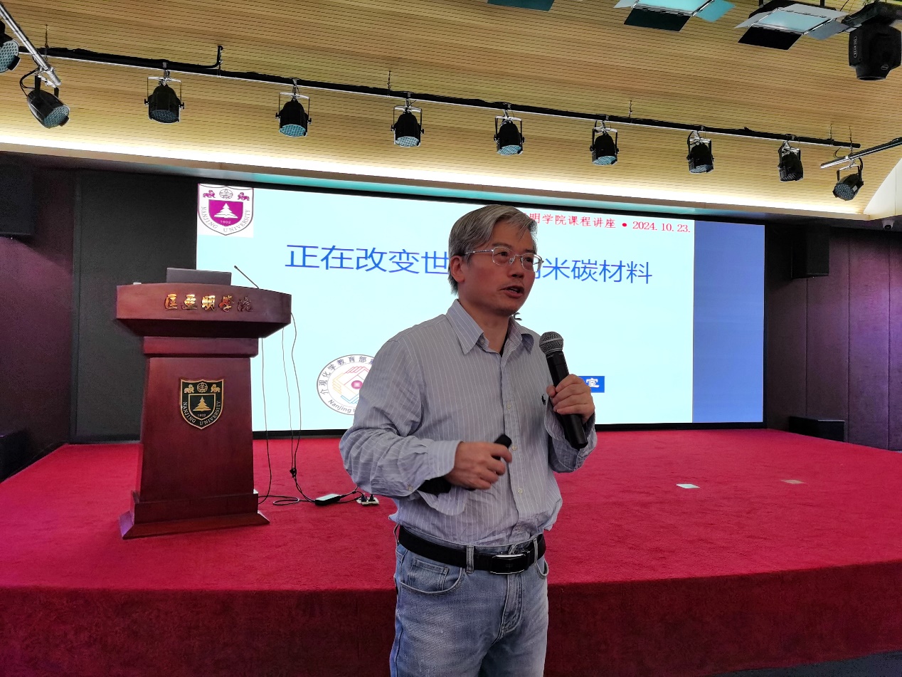 10月23日下午,24年秋季学期名师导学课程暨“科创筑梦”党团课第三讲如期进行。本次讲座邀请到南京大学化学化工娱乐城平台 胡征教授,题目为《正在改变世界的纳米碳材料》。